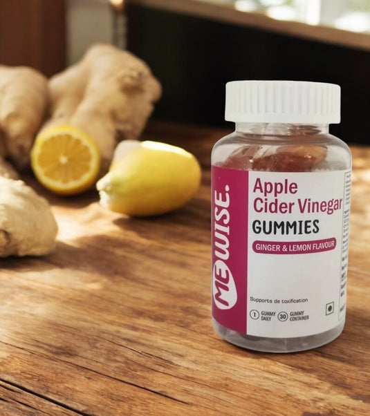 Each MeWise Apple Cider Vinegar Gummy packs 500mg of pure ACV, delivering all the benefits without the harsh taste. It helps lower blood sugar levels, increase GI in blood, treats dandruff & promotes shiny hair and detoxifies the entire body.